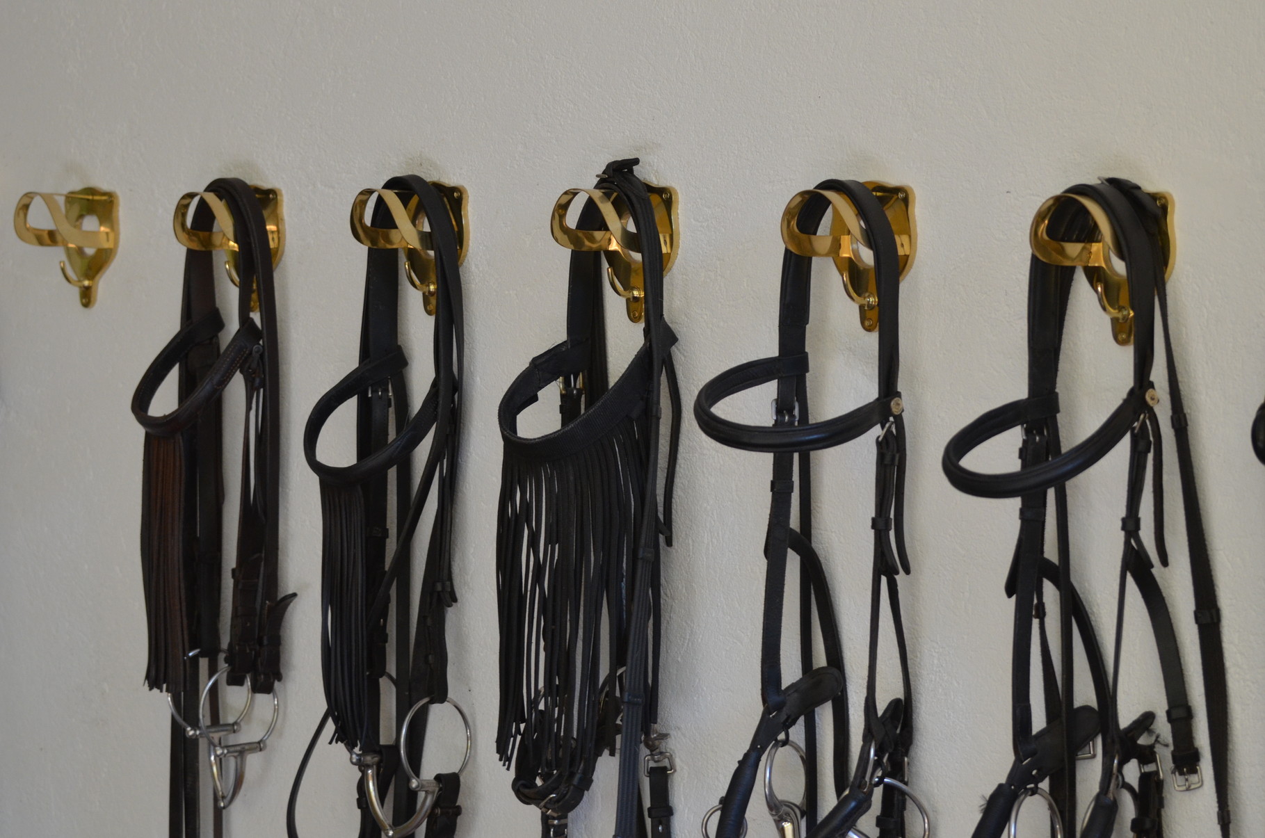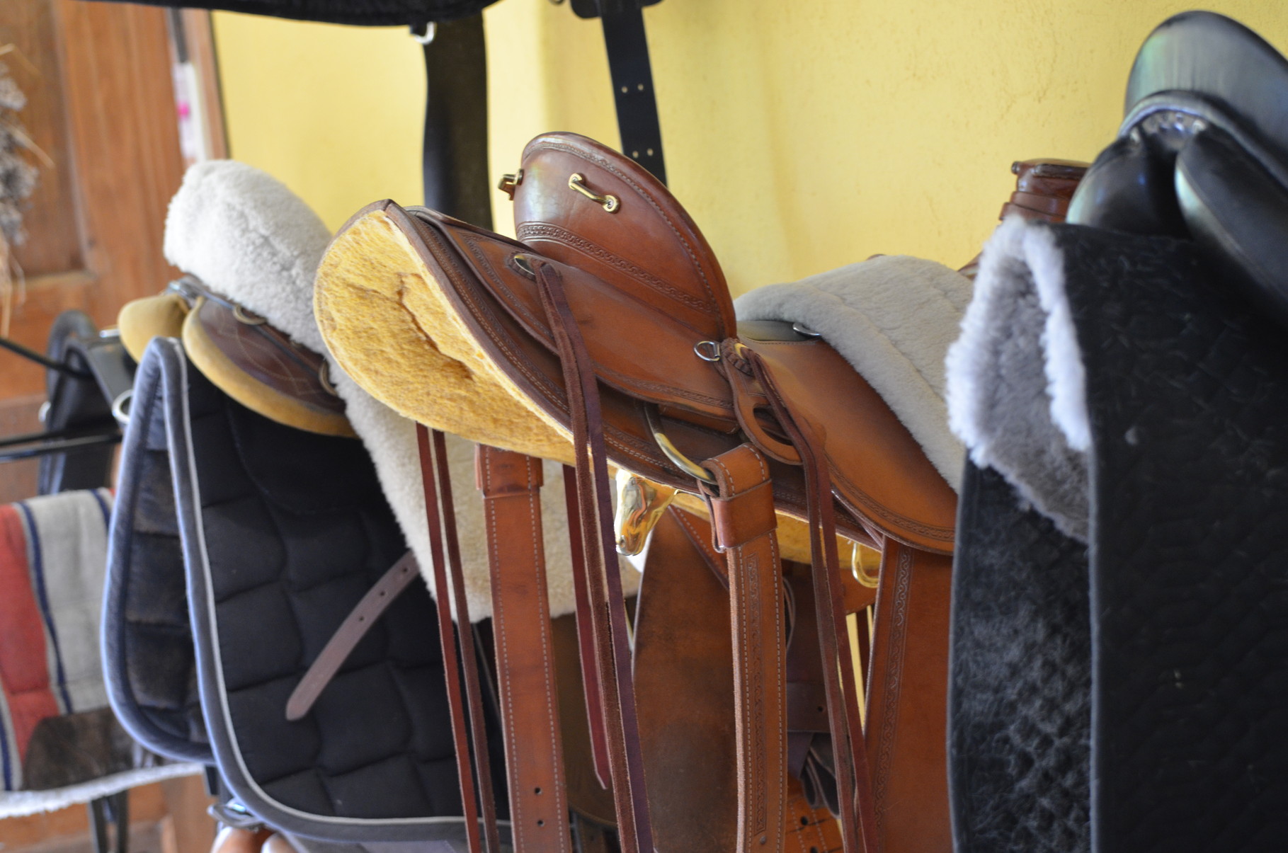 Gleich angrenzend an den Stall befindet sich die helle, gemütliche Sattelkammer. Die verschiedenen Sättel, Zäume und Reitutensilien werden übersichtlich und geordnet aufbewahrt. Jeder Gegenstand hat seinen Platz. Dieser gut strukturierte Rahmen soll das selbständige Handeln meiner Klienten unterstützen. Ein WC mit Lavabo und Dusche stehen dem Klienten ebenfalls zur Verfügung.